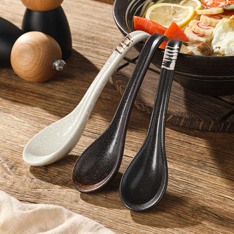 SPOON002 - Japanese Retro Long-Handled Ceramic Soup Spoon